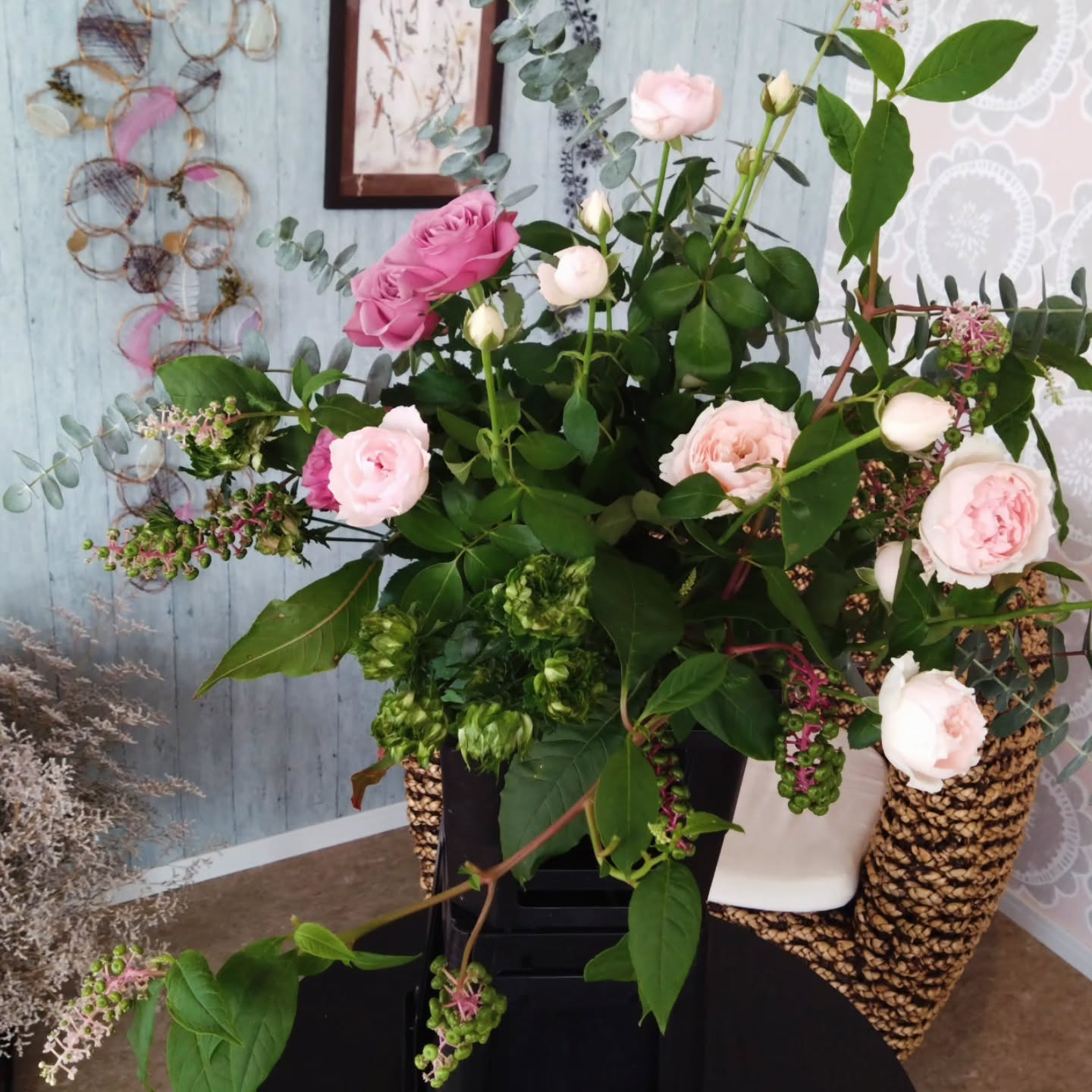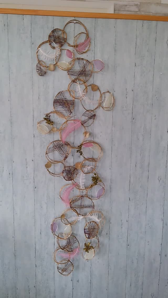 オブジェ、タペストリー オブジェ、タペストリーやっと仕上げました😅のの彩です🌸ずっとやりかけになっていたオブジェ…やっと仕上げました😊この枝の形✨いい味だしてくれてます😀タペストリー去年のお正月の金柳ずっと店にあったの…