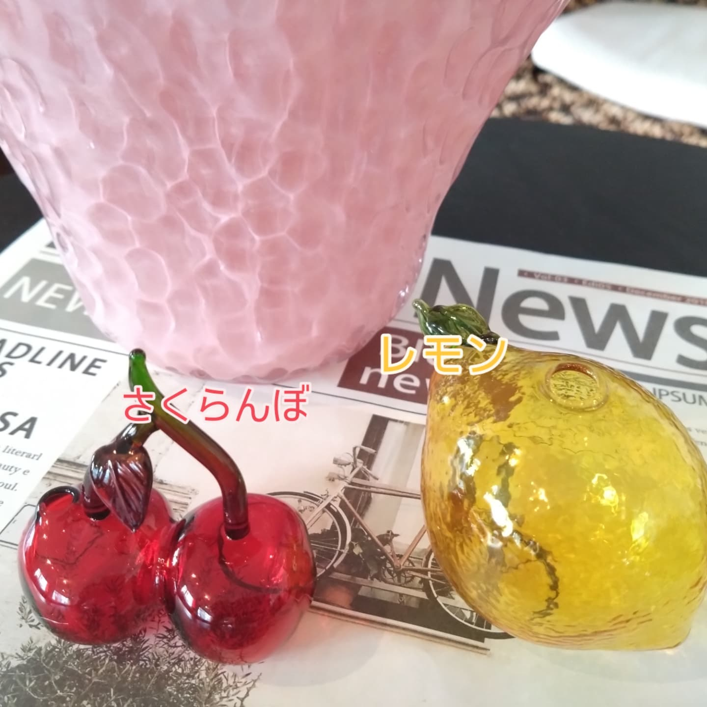 可愛い花びんも入りました💓のの彩です🌸フルーツな花びんちゃんと花びんになってます😁お庭の小花を1輪🌼いちごな花びんもリアルで可愛いです😍シンプルな形にアール・デコ寄りの模様意外と飾り方は多様です…
